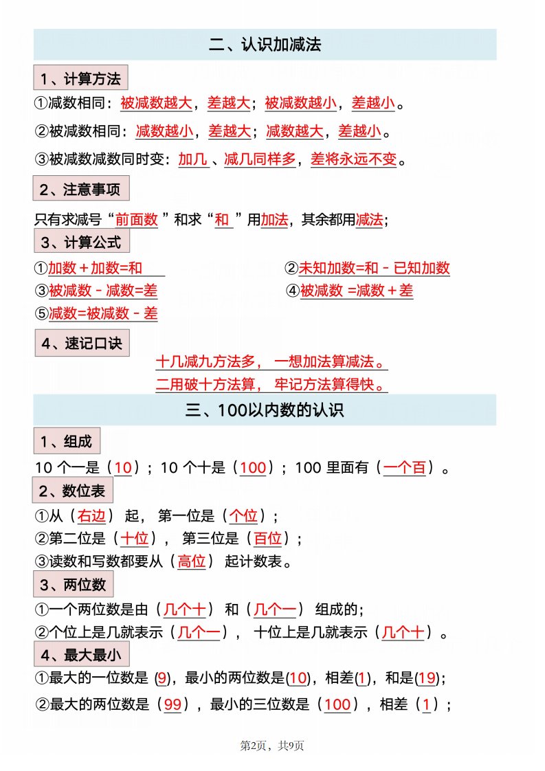 数学一年级下册必背知识点汇总_共9页
