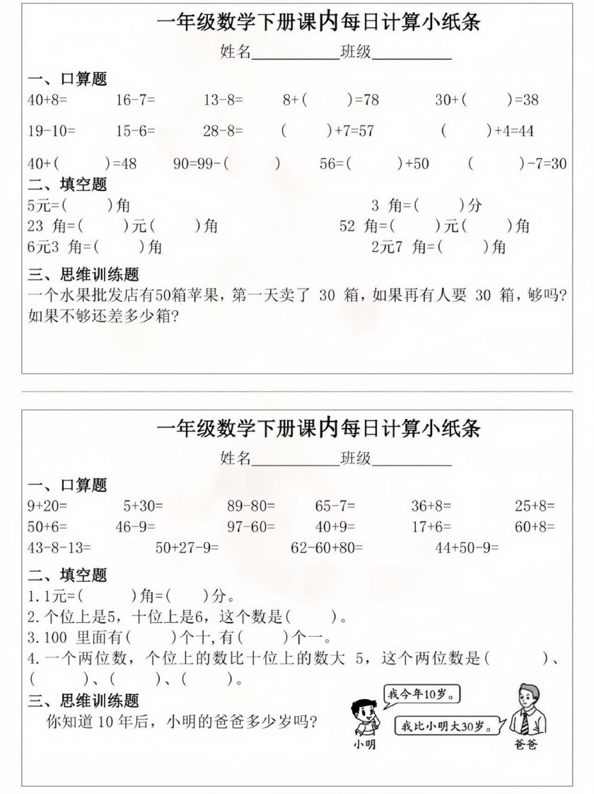 当前位置: 首页小学资源小学一年级正文 一年级数学下册课内每日计算小纸条_共4页 小学一年级 2 周前 0 0 5 以上为部分内容预览,如需源文档请登录您的会员账号进行下载! 声明:本站所有文章,如无特殊说明或标注,均为本站原创发布。任何个人或组织,在未征得本站同意时,禁止复制、盗用、采集、发布本站内容到任何网站、书籍等各类媒体平台。如若本站内容侵犯了原著者的合法权益,可联系我们进行处理。 尚学资源永久会员 打赏 收藏 海报 链接