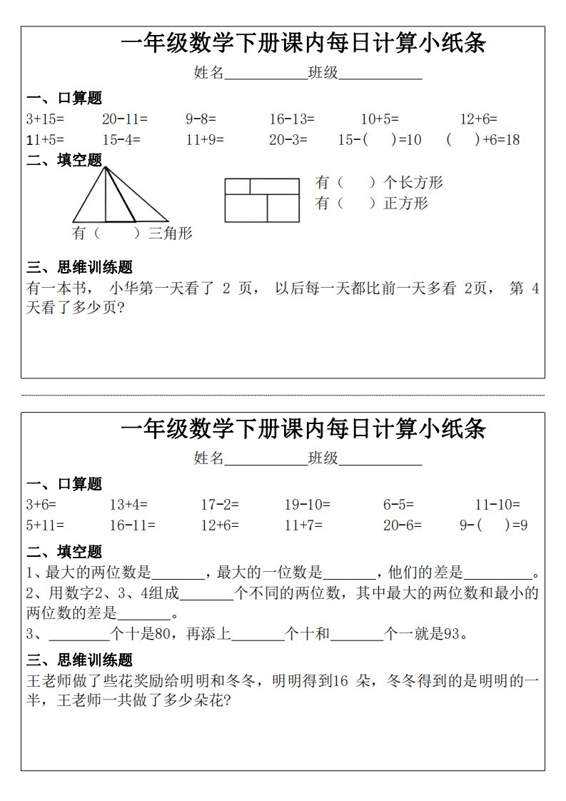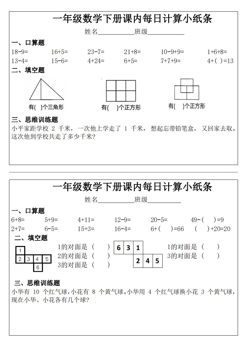 当前位置: 首页小学资源小学一年级正文 3_1_一年级下册数学课内每日计算小纸条_共11页 小学一年级 2 周前 0 0 10 以上为部分内容预览,如需源文档请登录您的会员账号进行下载! 声明:本站所有文章,如无特殊说明或标注,均为本站原创发布。任何个人或组织,在未征得本站同意时,禁止复制、盗用、采集、发布本站内容到任何网站、书籍等各类媒体平台。如若本站内容侵犯了原著者的合法权益,可联系我们进行处理。 尚学资源永久会员 打赏 收藏 海报 链接