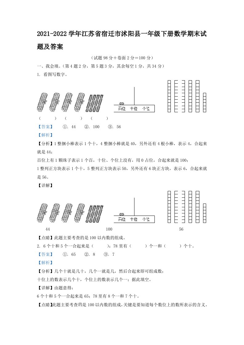 当前位置: 首页小学资源小学一年级正文 2021-2022学年江苏省宿迁市沭阳县一年级下册数学期末试题及答案(Word版)_共8页 小学一年级 2 周前 0 0 5 以上为部分内容预览,如需源文档请登录您的会员账号进行下载! 声明:本站所有文章,如无特殊说明或标注,均为本站原创发布。任何个人或组织,在未征得本站同意时,禁止复制、盗用、采集、发布本站内容到任何网站、书籍等各类媒体平台。如若本站内容侵犯了原著者的合法权益,可联系我们进行处理。 尚学资源永久会员 打赏 收藏 海报 链接