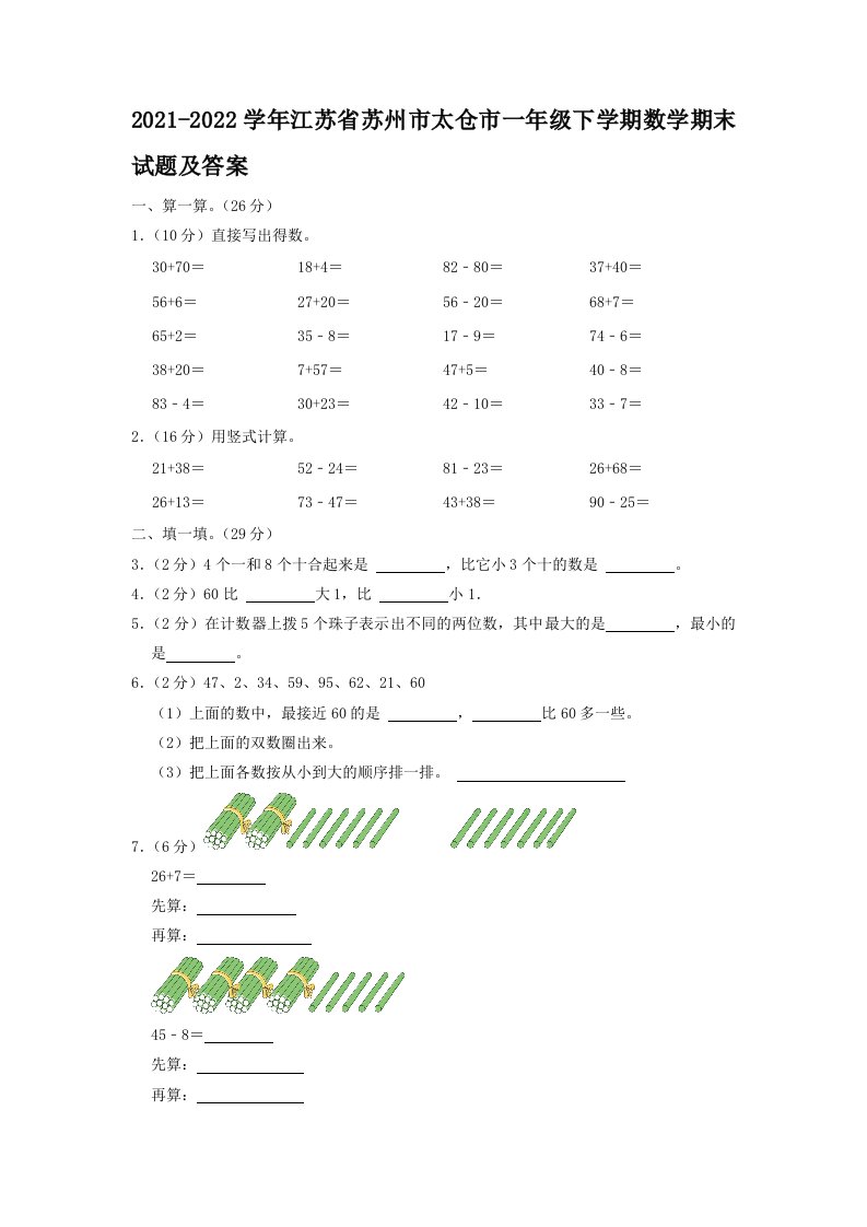 当前位置: 首页小学资源小学一年级正文 2021-2022学年江苏省苏州市太仓市一年级下学期数学期末试题及答案(Word版)_共11页 小学一年级 2 周前 0 0 10 以上为部分内容预览,如需源文档请登录您的会员账号进行下载! 声明:本站所有文章,如无特殊说明或标注,均为本站原创发布。任何个人或组织,在未征得本站同意时,禁止复制、盗用、采集、发布本站内容到任何网站、书籍等各类媒体平台。如若本站内容侵犯了原著者的合法权益,可联系我们进行处理。 尚学资源永久会员 打赏 收藏 海报 链接