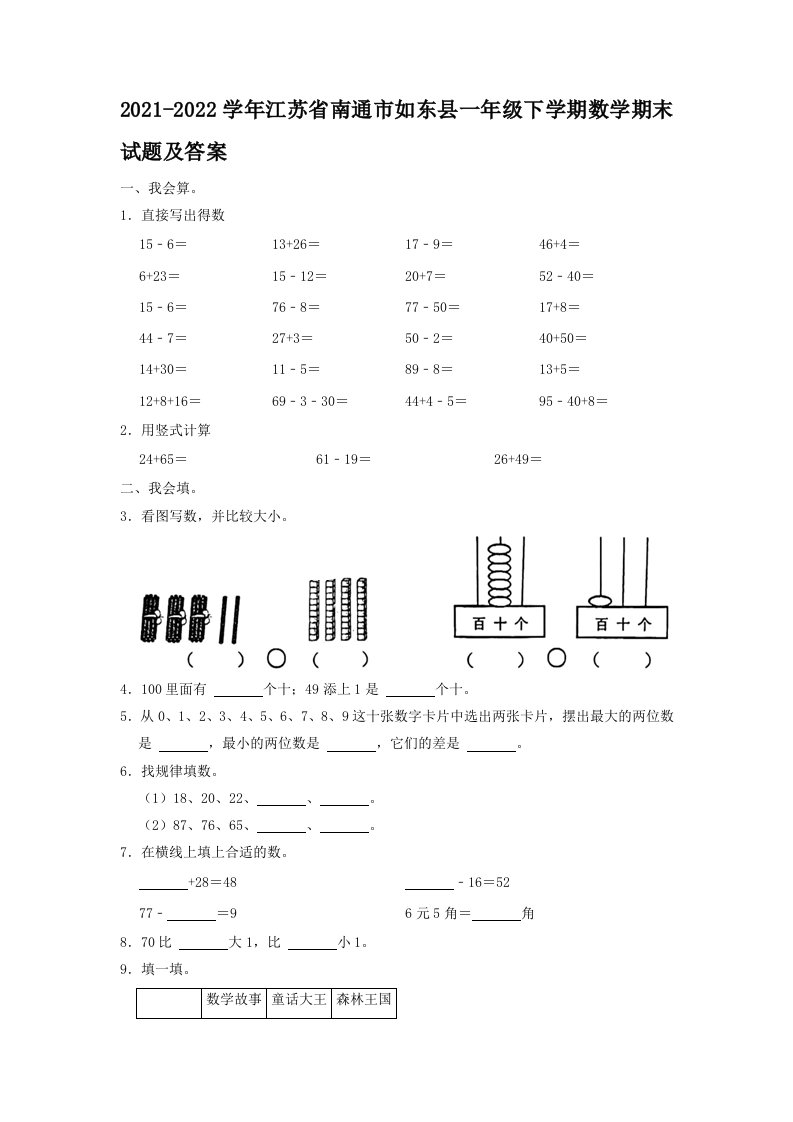 当前位置: 首页小学资源小学一年级正文 2021-2022学年江苏省南通市如东县一年级下学期数学期末试题及答案(Word版)_共6页 小学一年级 2 周前 0 0 5 以上为部分内容预览,如需源文档请登录您的会员账号进行下载! 声明:本站所有文章,如无特殊说明或标注,均为本站原创发布。任何个人或组织,在未征得本站同意时,禁止复制、盗用、采集、发布本站内容到任何网站、书籍等各类媒体平台。如若本站内容侵犯了原著者的合法权益,可联系我们进行处理。 尚学资源永久会员 打赏 收藏 海报 链接