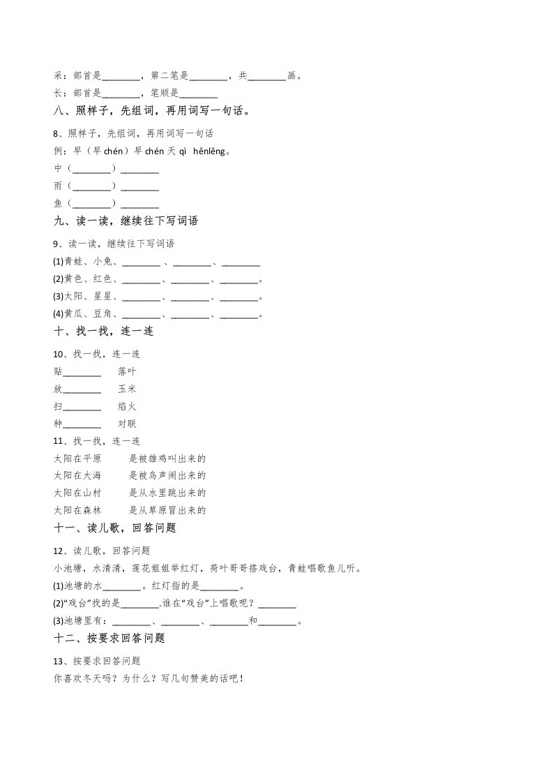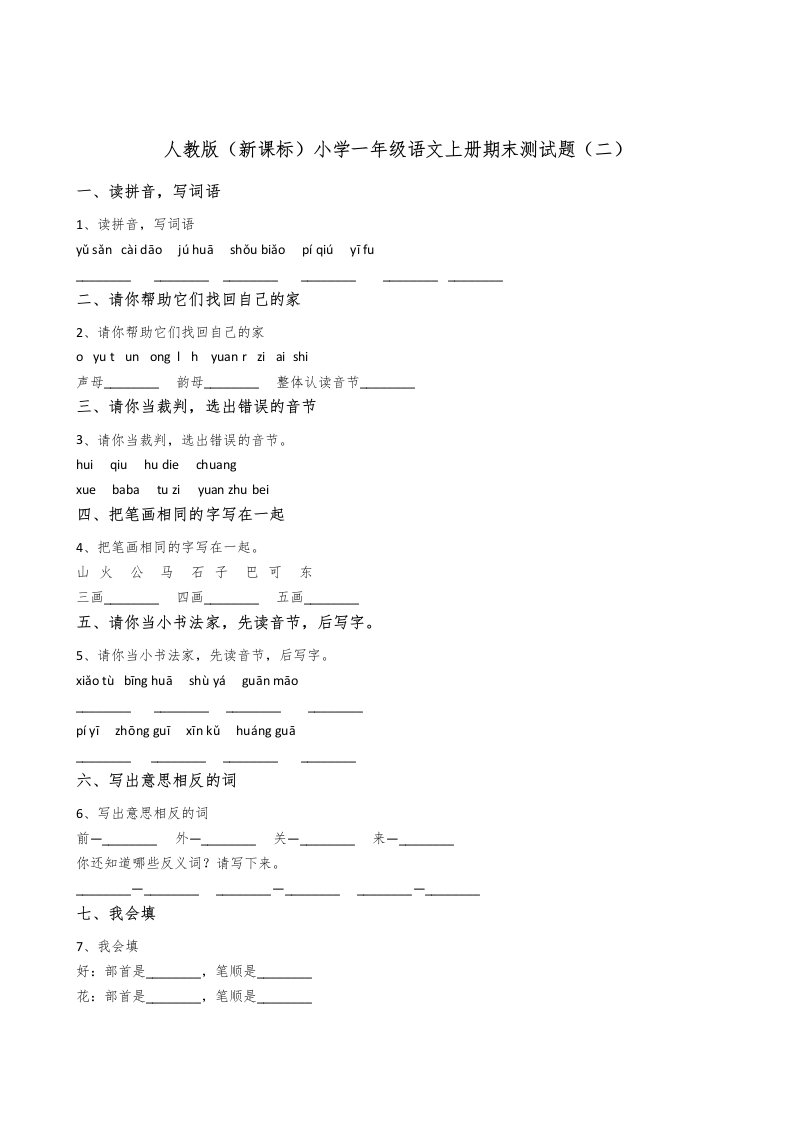 当前位置: 首页小学资源小学一年级正文 一年级语文上册上期末卷(二)(部编版)_共6页 小学一年级 2 周前 0 0 5 以上为部分内容预览,如需源文档请登录您的会员账号进行下载! 声明:本站所有文章,如无特殊说明或标注,均为本站原创发布。任何个人或组织,在未征得本站同意时,禁止复制、盗用、采集、发布本站内容到任何网站、书籍等各类媒体平台。如若本站内容侵犯了原著者的合法权益,可联系我们进行处理。 尚学资源永久会员 打赏 收藏 海报 链接
