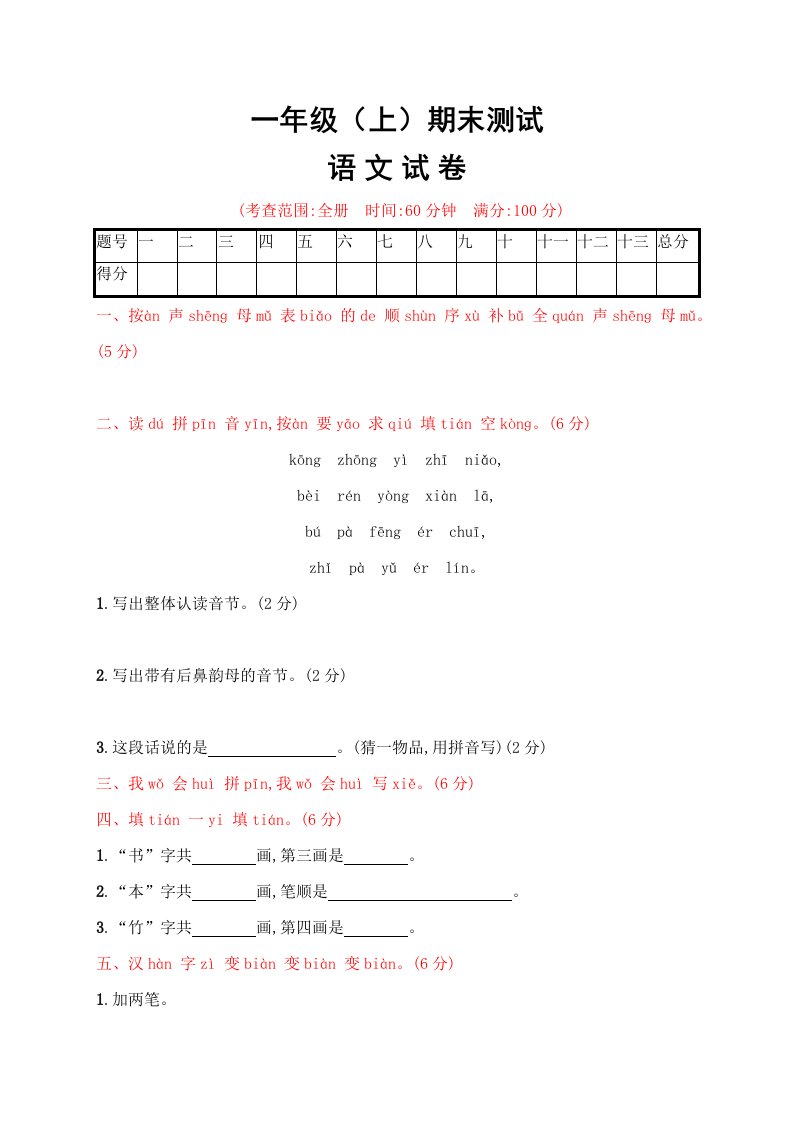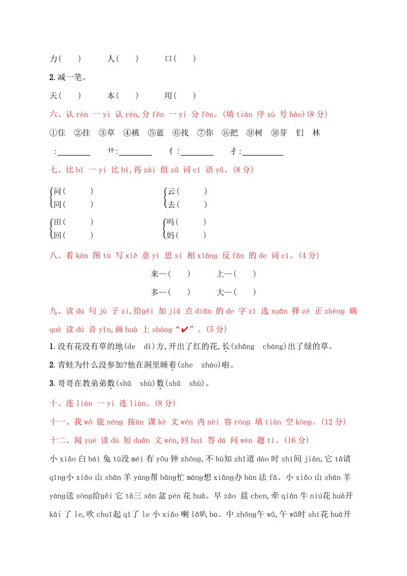 当前位置: 首页小学资源小学一年级正文 一年级语文上册期末试卷(20)(有答案)(部编版)_共4页 小学一年级 2 周前 0 0 5 以上为部分内容预览,如需源文档请登录您的会员账号进行下载! 声明:本站所有文章,如无特殊说明或标注,均为本站原创发布。任何个人或组织,在未征得本站同意时,禁止复制、盗用、采集、发布本站内容到任何网站、书籍等各类媒体平台。如若本站内容侵犯了原著者的合法权益,可联系我们进行处理。 尚学资源永久会员 打赏 收藏 海报 链接