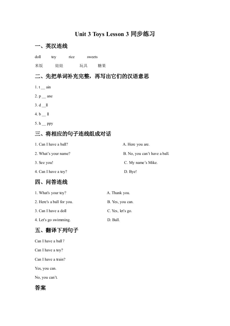 当前位置: 首页小学资源小学一年级正文 一年级英语下册Unit3ToysLesson3同步练习1_共2页 小学一年级 2 周前 0 0 5 以上为部分内容预览,如需源文档请登录您的会员账号进行下载! 声明:本站所有文章,如无特殊说明或标注,均为本站原创发布。任何个人或组织,在未征得本站同意时,禁止复制、盗用、采集、发布本站内容到任何网站、书籍等各类媒体平台。如若本站内容侵犯了原著者的合法权益,可联系我们进行处理。 尚学资源永久会员 打赏 收藏 海报 链接