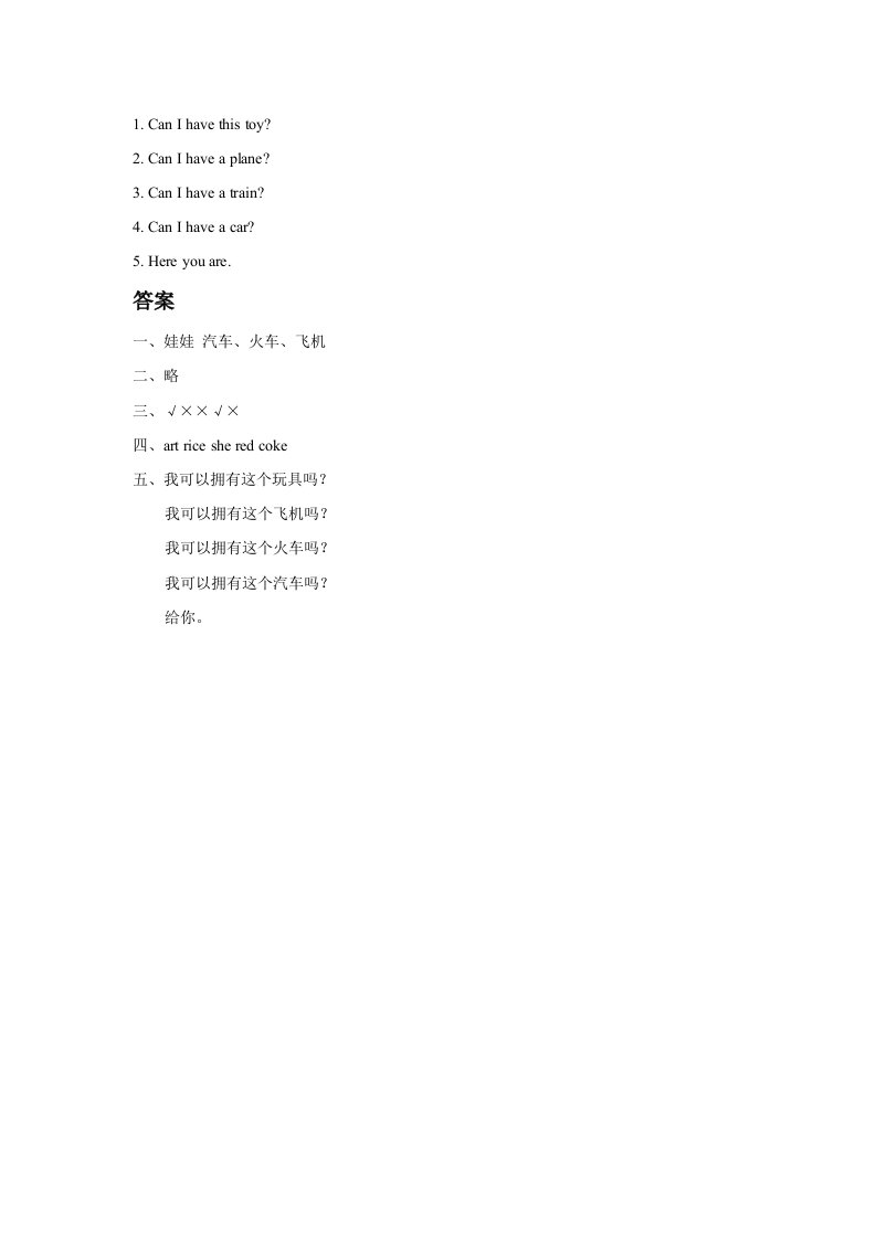 当前位置: 首页小学资源小学一年级正文 一年级英语下册Unit3ToysLesson2同步练习2_共2页 小学一年级 2 周前 0 0 5 以上为部分内容预览,如需源文档请登录您的会员账号进行下载! 声明:本站所有文章,如无特殊说明或标注,均为本站原创发布。任何个人或组织,在未征得本站同意时,禁止复制、盗用、采集、发布本站内容到任何网站、书籍等各类媒体平台。如若本站内容侵犯了原著者的合法权益,可联系我们进行处理。 尚学资源永久会员 打赏 收藏 海报 链接