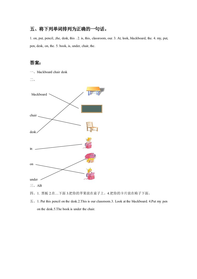 一年级英语下册Unit1ClassroomLesson1同步练习3_共2页
