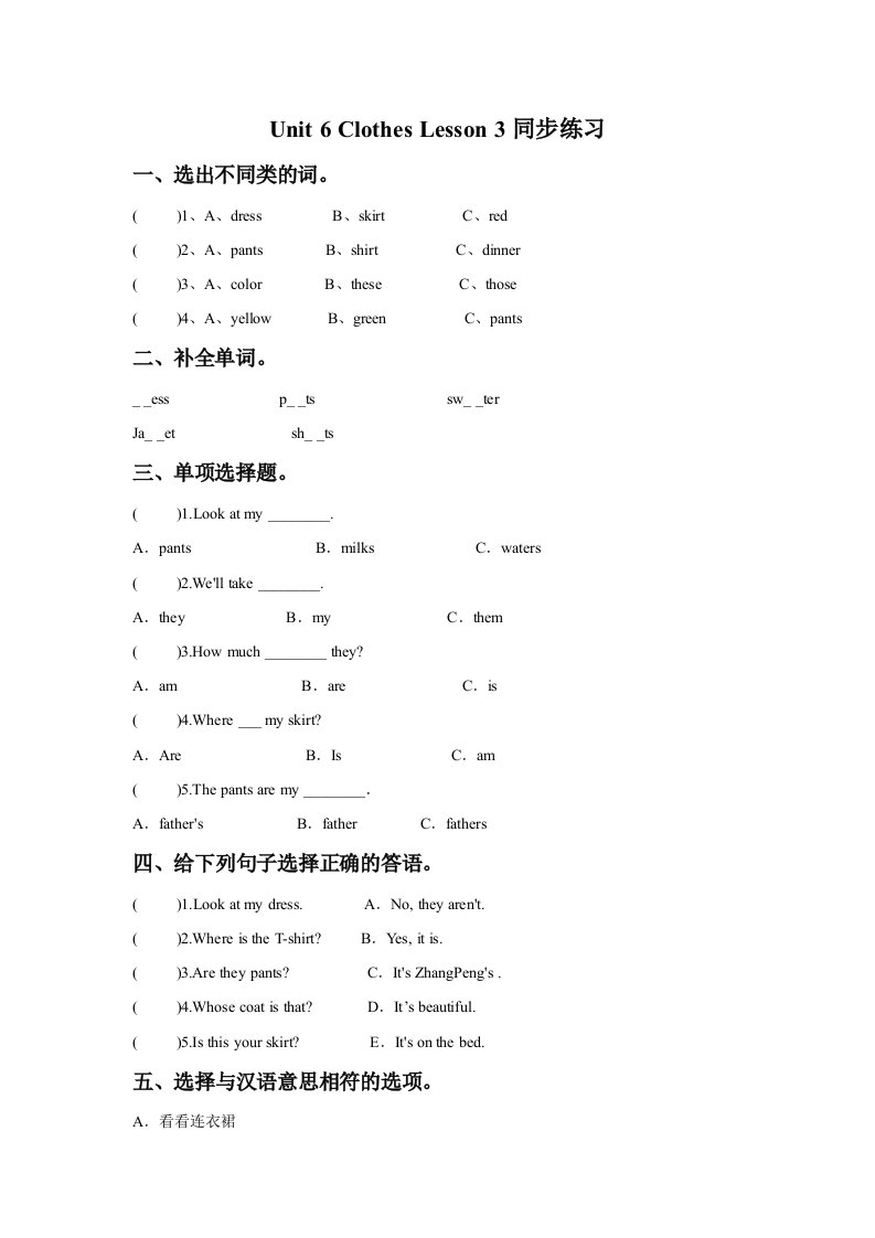 当前位置: 首页小学资源小学一年级正文 一年级英语下册Unit6ClothesLesson3同步练习2_共2页 小学一年级 2 周前 0 0 5 以上为部分内容预览,如需源文档请登录您的会员账号进行下载! 声明:本站所有文章,如无特殊说明或标注,均为本站原创发布。任何个人或组织,在未征得本站同意时,禁止复制、盗用、采集、发布本站内容到任何网站、书籍等各类媒体平台。如若本站内容侵犯了原著者的合法权益,可联系我们进行处理。 尚学资源永久会员 打赏 收藏 海报 链接