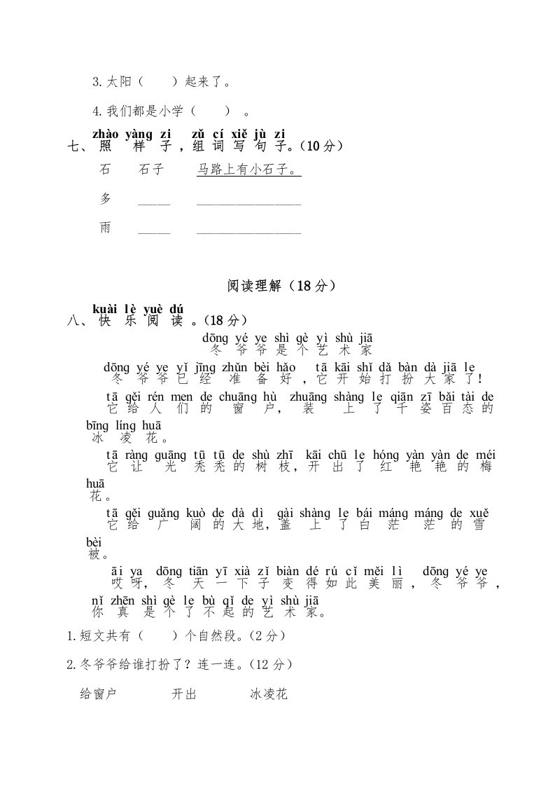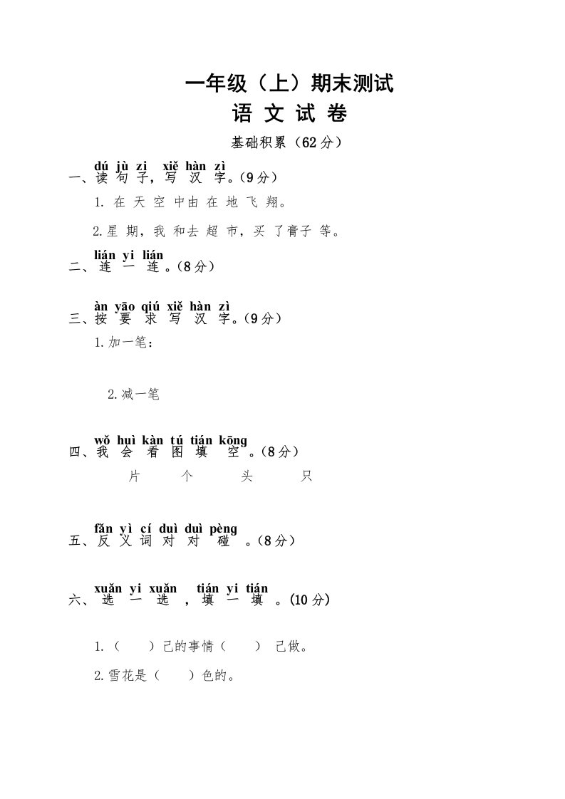 一年级语文上册期末试卷(11)(有答案)(部编版)_共4页