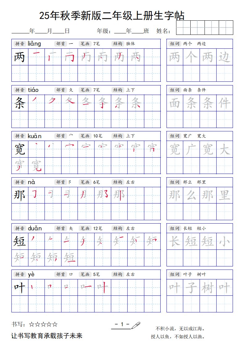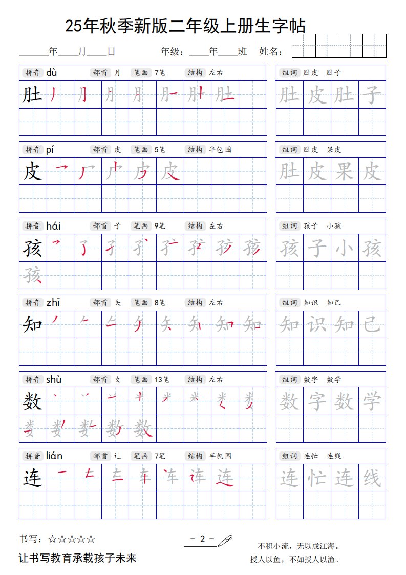 当前位置: 首页小学资源小学二年级正文 二上语文【25年秋季新版生字贴】_共42页 小学二年级 2 周前 0 0 15 以上为部分内容预览,如需源文档请登录您的会员账号进行下载! 声明:本站所有文章,如无特殊说明或标注,均为本站原创发布。任何个人或组织,在未征得本站同意时,禁止复制、盗用、采集、发布本站内容到任何网站、书籍等各类媒体平台。如若本站内容侵犯了原著者的合法权益,可联系我们进行处理。 尚学资源永久会员 打赏 收藏 海报 链接