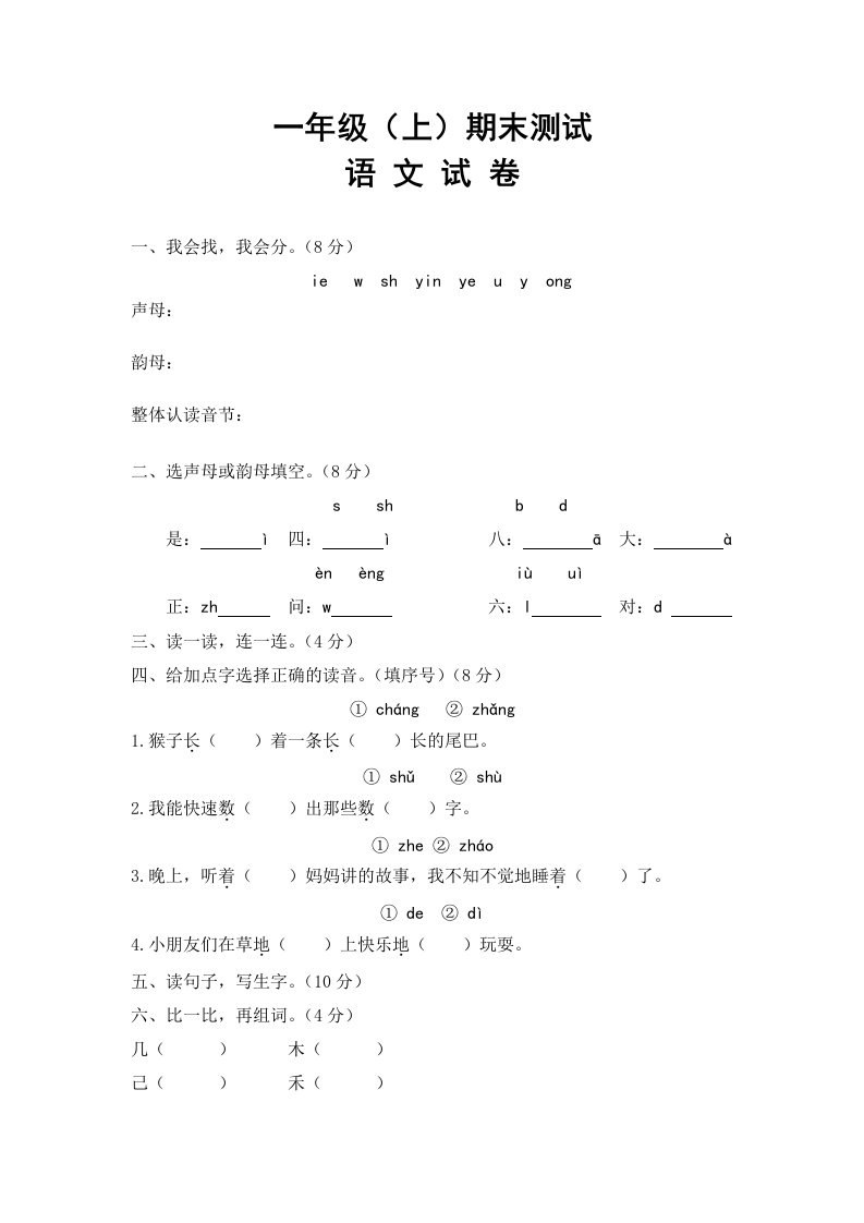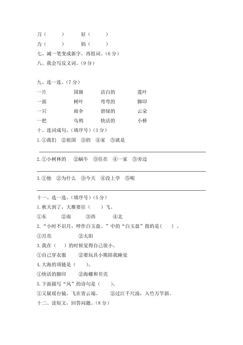 一年级语文上册期末试卷(9)(有答案)(部编版)_共5页
