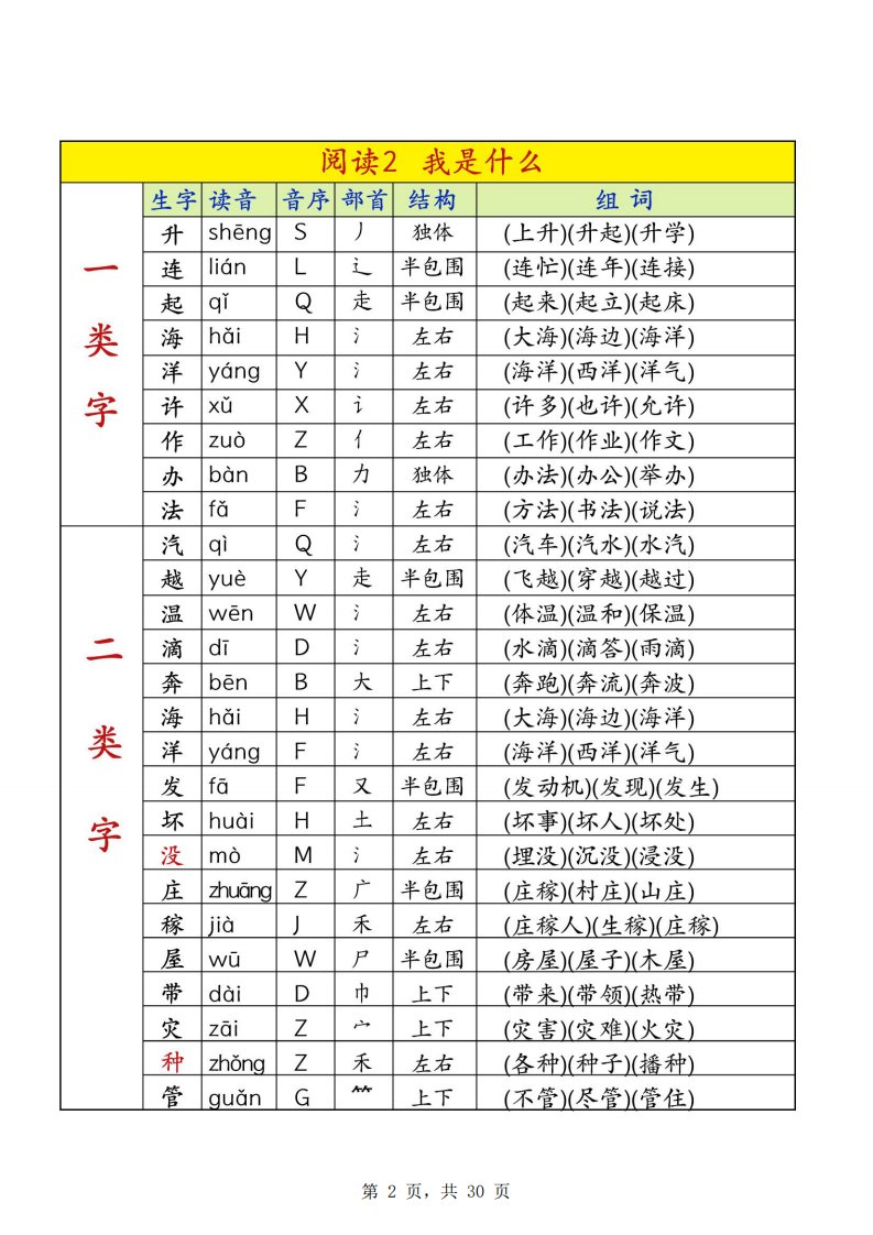 25新二上语文课后生字组词(生字表一类字+识字表二类字)30页_共30页