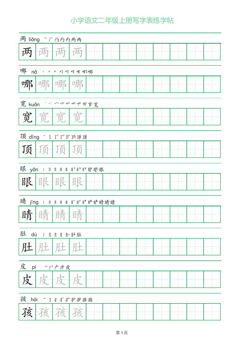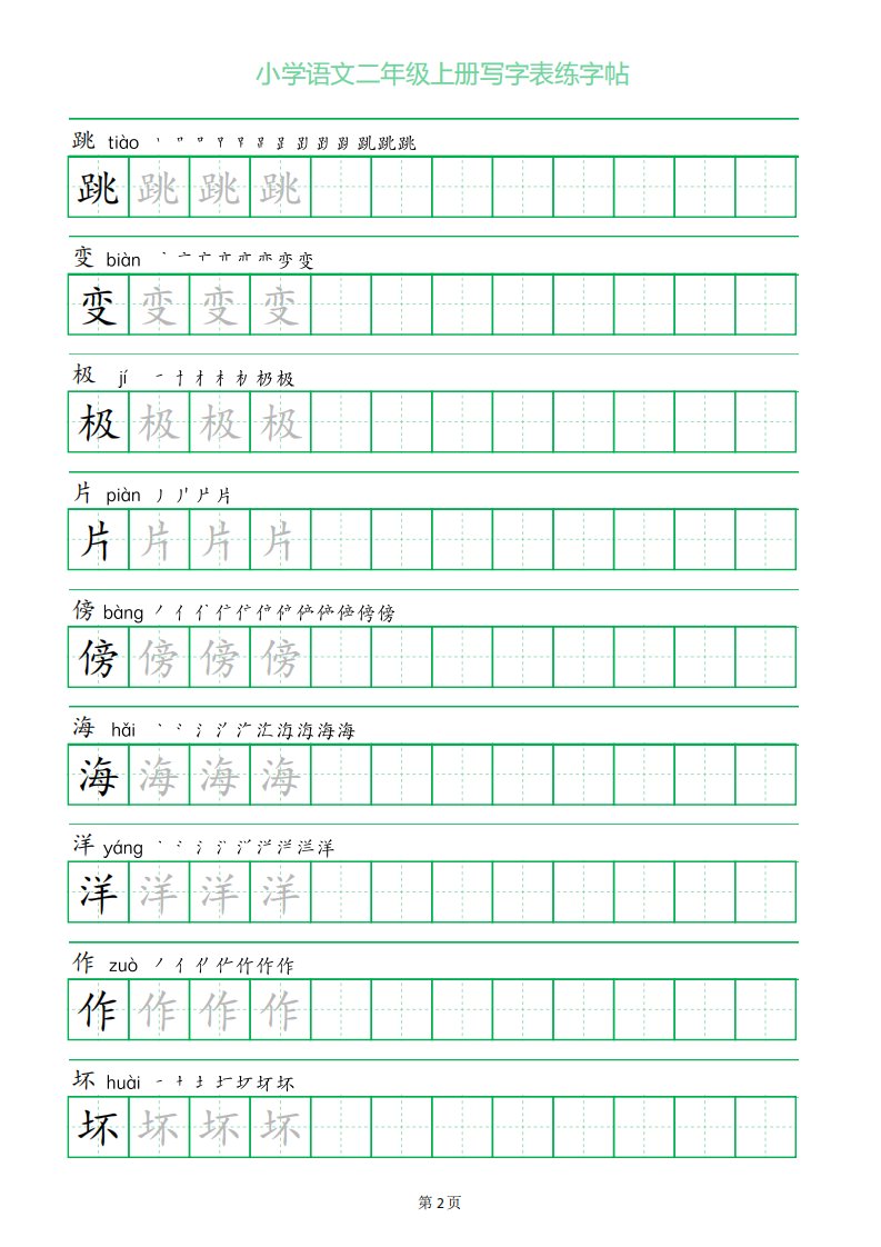 二年级语文上册一字三描红写字表字帖_共28页