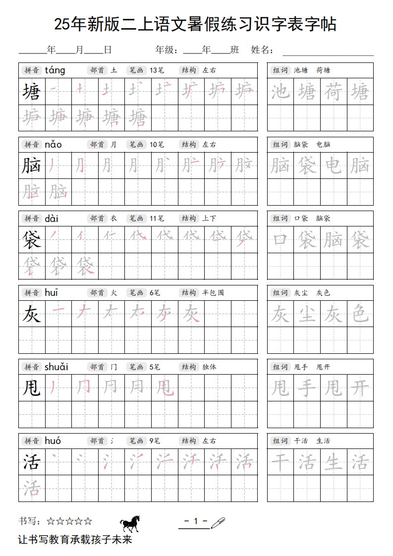 当前位置: 首页小学资源小学二年级正文 25年新版二上语文暑假练习识字表字帖_共80页 小学二年级 2 周前 0 0 15 以上为部分内容预览,如需源文档请登录您的会员账号进行下载! 声明:本站所有文章,如无特殊说明或标注,均为本站原创发布。任何个人或组织,在未征得本站同意时,禁止复制、盗用、采集、发布本站内容到任何网站、书籍等各类媒体平台。如若本站内容侵犯了原著者的合法权益,可联系我们进行处理。 尚学资源永久会员 打赏 收藏 海报 链接