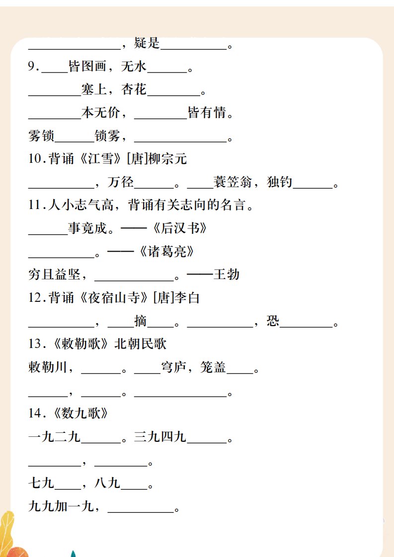 【2025秋新版】二年级上册语文期末日积月累·古诗填空_共5页