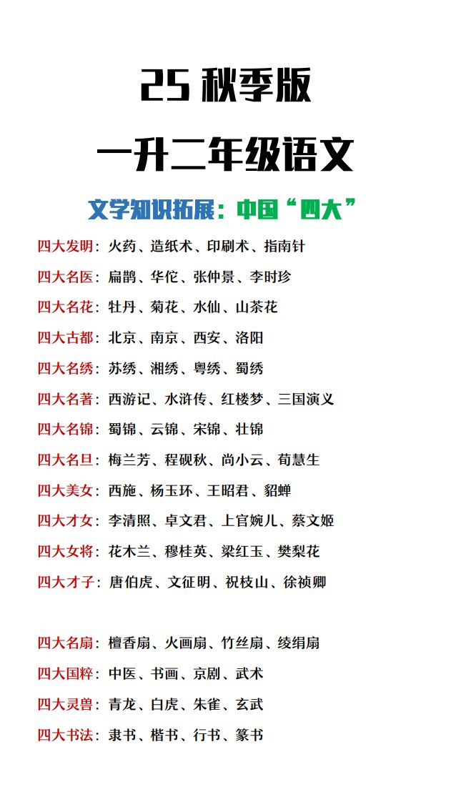 当前位置: 首页小学资源小学二年级正文 【2025秋新版】一升二年级暑假文学常识拓展《中国“四大”》-二上语文_共1页 小学二年级 2 周前 0 0 5 以上为部分内容预览,如需源文档请登录您的会员账号进行下载! 声明:本站所有文章,如无特殊说明或标注,均为本站原创发布。任何个人或组织,在未征得本站同意时,禁止复制、盗用、采集、发布本站内容到任何网站、书籍等各类媒体平台。如若本站内容侵犯了原著者的合法权益,可联系我们进行处理。 尚学资源永久会员 打赏 收藏 海报 链接
