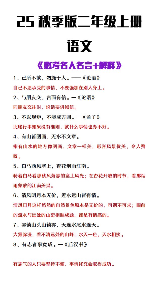 【2025秋新版】二年级上册语文必背名人名言及解释_共2页