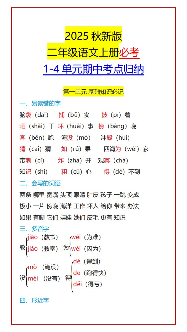 当前位置: 首页小学资源小学二年级正文 【2025秋新版】二年级语文上册必考1-4单元期中考点归纳_共7页 小学二年级 2 周前 0 0 5 以上为部分内容预览,如需源文档请登录您的会员账号进行下载! 声明:本站所有文章,如无特殊说明或标注,均为本站原创发布。任何个人或组织,在未征得本站同意时,禁止复制、盗用、采集、发布本站内容到任何网站、书籍等各类媒体平台。如若本站内容侵犯了原著者的合法权益,可联系我们进行处理。 尚学资源永久会员 打赏 收藏 海报 链接