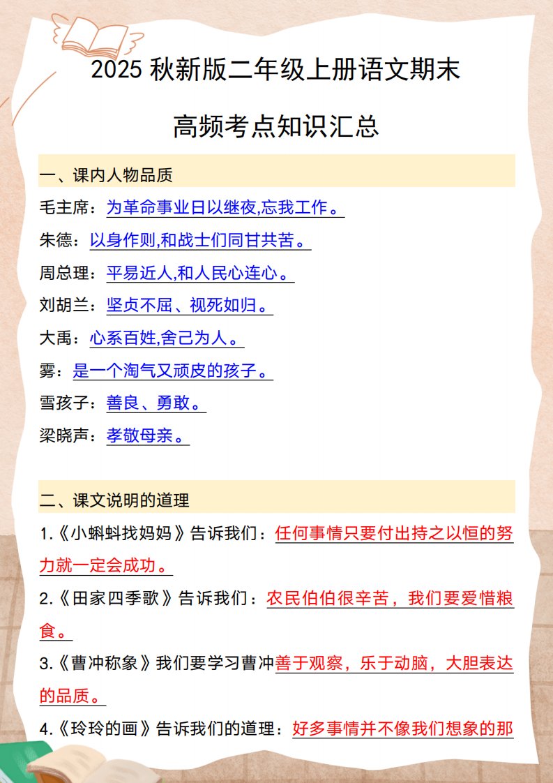 【2025秋新版】二年级上册语文期末高频考点知识汇总_共5页