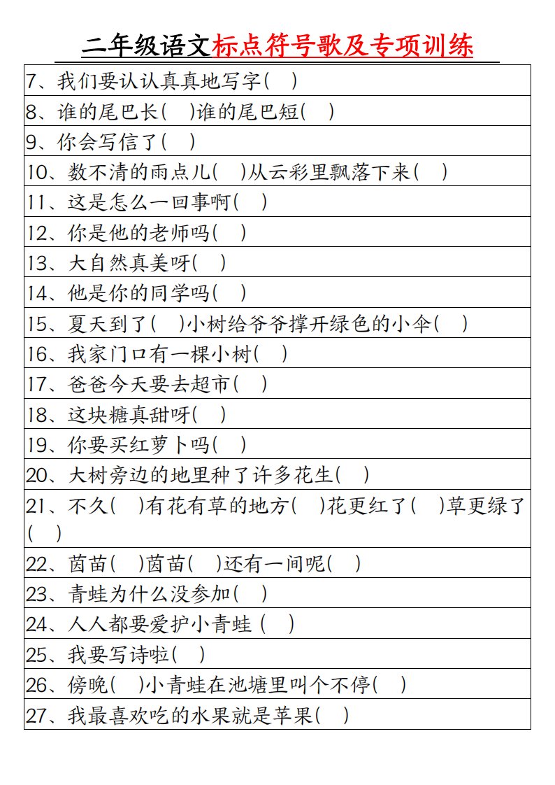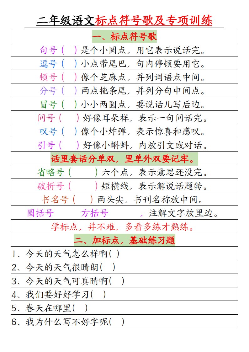二年级语文标点符号歌及专项训练(4页)_共4页