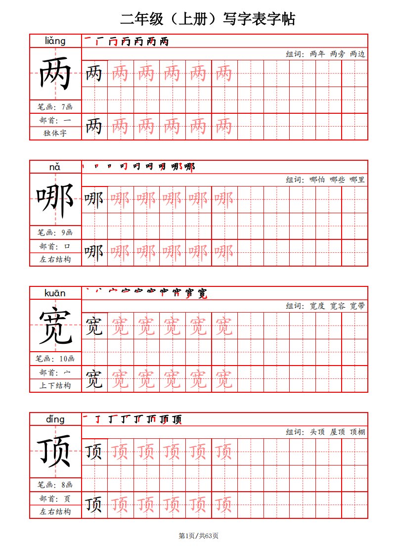 当前位置: 首页小学资源小学二年级正文 二上语文写字表字帖(笔画+部首+笔顺+组词)_共63页 小学二年级 2 周前 0 0 15 以上为部分内容预览,如需源文档请登录您的会员账号进行下载! 声明:本站所有文章,如无特殊说明或标注,均为本站原创发布。任何个人或组织,在未征得本站同意时,禁止复制、盗用、采集、发布本站内容到任何网站、书籍等各类媒体平台。如若本站内容侵犯了原著者的合法权益,可联系我们进行处理。 尚学资源永久会员 打赏 收藏 海报 链接