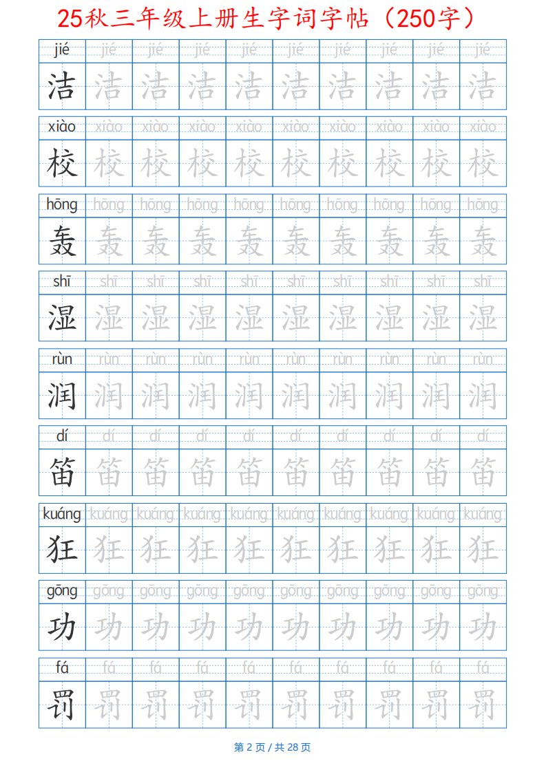 当前位置: 首页小学资源小学二年级正文 25秋三年级上册生字词字帖(250字)带拼音版-二上语文_共28页 小学二年级 2 周前 0 0 15 以上为部分内容预览,如需源文档请登录您的会员账号进行下载! 声明:本站所有文章,如无特殊说明或标注,均为本站原创发布。任何个人或组织,在未征得本站同意时,禁止复制、盗用、采集、发布本站内容到任何网站、书籍等各类媒体平台。如若本站内容侵犯了原著者的合法权益,可联系我们进行处理。 尚学资源永久会员 打赏 收藏 海报 链接