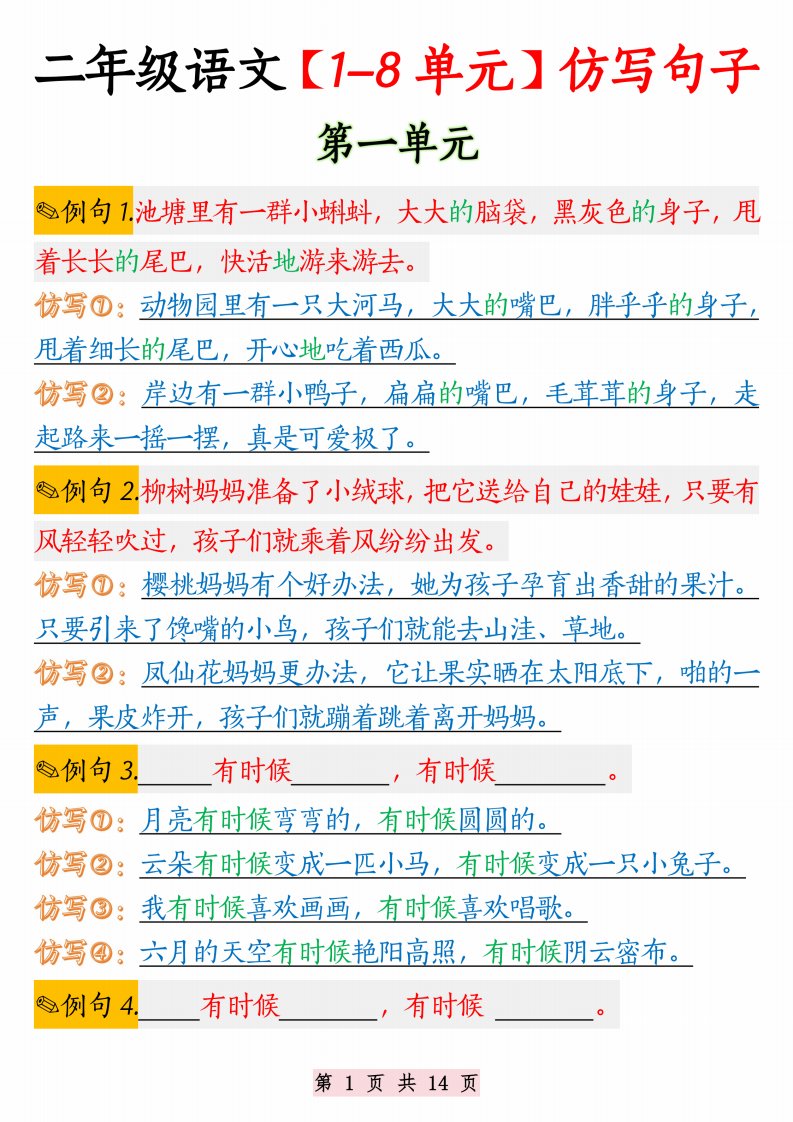 当前位置: 首页小学资源小学二年级正文 二年级语文1-8单元仿写句子纯图版-二上语文_共14页 小学二年级 2 周前 0 0 10 以上为部分内容预览,如需源文档请登录您的会员账号进行下载! 声明:本站所有文章,如无特殊说明或标注,均为本站原创发布。任何个人或组织,在未征得本站同意时,禁止复制、盗用、采集、发布本站内容到任何网站、书籍等各类媒体平台。如若本站内容侵犯了原著者的合法权益,可联系我们进行处理。 尚学资源永久会员 打赏 收藏 海报 链接