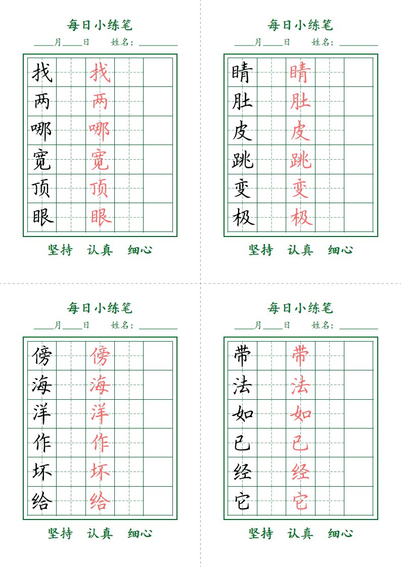 当前位置: 首页小学资源小学二年级正文 二上语文每日小打卡-护眼绿_共11页 小学二年级 2 周前 0 0 10 以上为部分内容预览,如需源文档请登录您的会员账号进行下载! 声明:本站所有文章,如无特殊说明或标注,均为本站原创发布。任何个人或组织,在未征得本站同意时,禁止复制、盗用、采集、发布本站内容到任何网站、书籍等各类媒体平台。如若本站内容侵犯了原著者的合法权益,可联系我们进行处理。 尚学资源永久会员 打赏 收藏 海报 链接