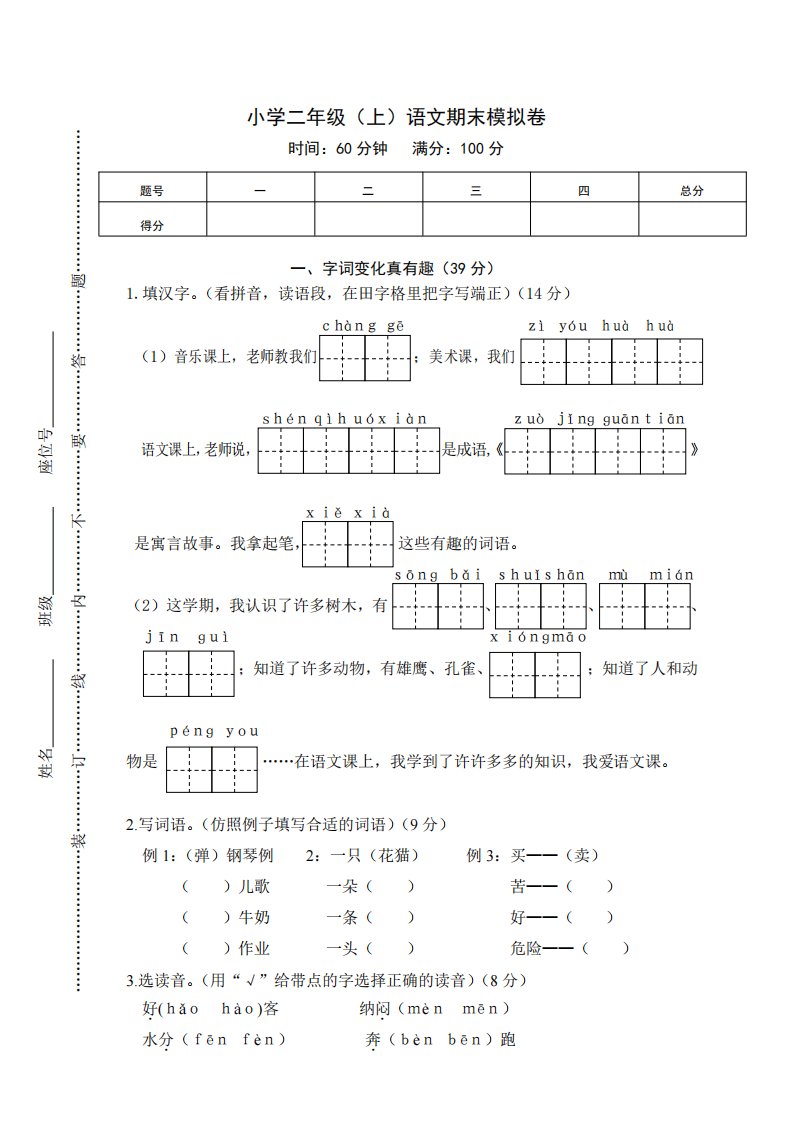 当前位置: 首页小学资源小学二年级正文 二上语文期末综合试卷(1)_共5页 小学二年级 2 周前 0 0 5 以上为部分内容预览,如需源文档请登录您的会员账号进行下载! 声明:本站所有文章,如无特殊说明或标注,均为本站原创发布。任何个人或组织,在未征得本站同意时,禁止复制、盗用、采集、发布本站内容到任何网站、书籍等各类媒体平台。如若本站内容侵犯了原著者的合法权益,可联系我们进行处理。 尚学资源永久会员 打赏 收藏 海报 链接