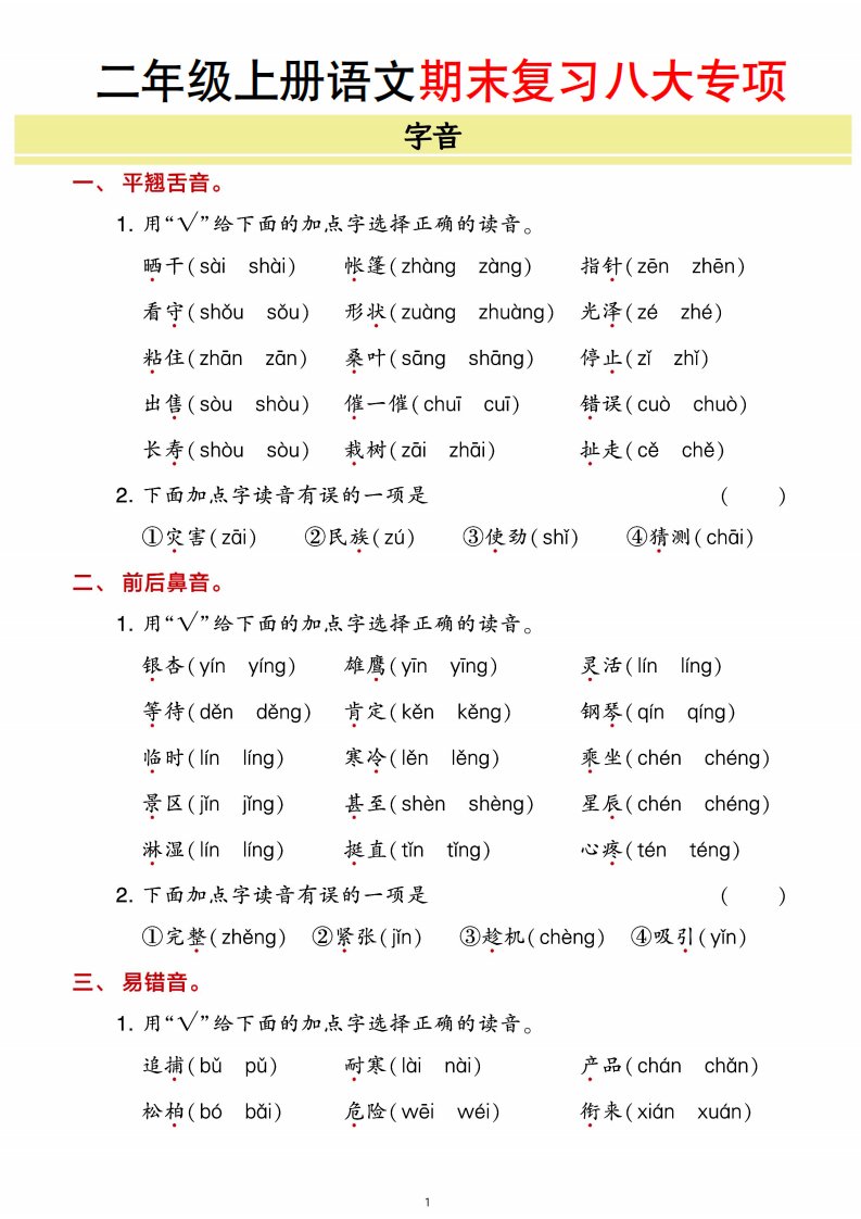二年级上册语文期末8大类归类复习(含诗词名句、课文理解)_共18页