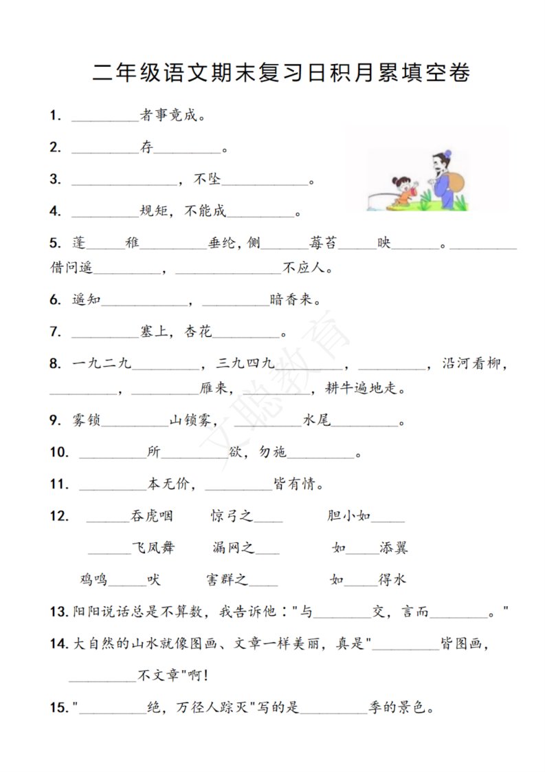 当前位置: 首页小学资源小学二年级正文 二年级语文期末复习日积月累填空卷,空白+答案12.2_共4页 小学二年级 2 周前 0 0 5 以上为部分内容预览,如需源文档请登录您的会员账号进行下载! 声明:本站所有文章,如无特殊说明或标注,均为本站原创发布。任何个人或组织,在未征得本站同意时,禁止复制、盗用、采集、发布本站内容到任何网站、书籍等各类媒体平台。如若本站内容侵犯了原著者的合法权益,可联系我们进行处理。 尚学资源永久会员 打赏 收藏 海报 链接