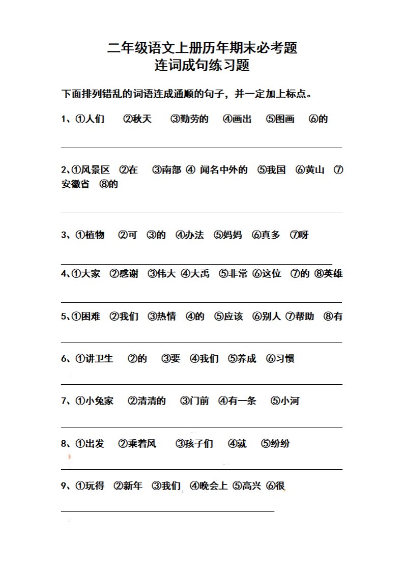 当前位置: 首页小学资源小学二年级正文 二上语文历年期末必考题连词成句练习题(2)_共4页 小学二年级 2 周前 0 0 5 以上为部分内容预览,如需源文档请登录您的会员账号进行下载! 声明:本站所有文章,如无特殊说明或标注,均为本站原创发布。任何个人或组织,在未征得本站同意时,禁止复制、盗用、采集、发布本站内容到任何网站、书籍等各类媒体平台。如若本站内容侵犯了原著者的合法权益,可联系我们进行处理。 尚学资源永久会员 打赏 收藏 海报 链接