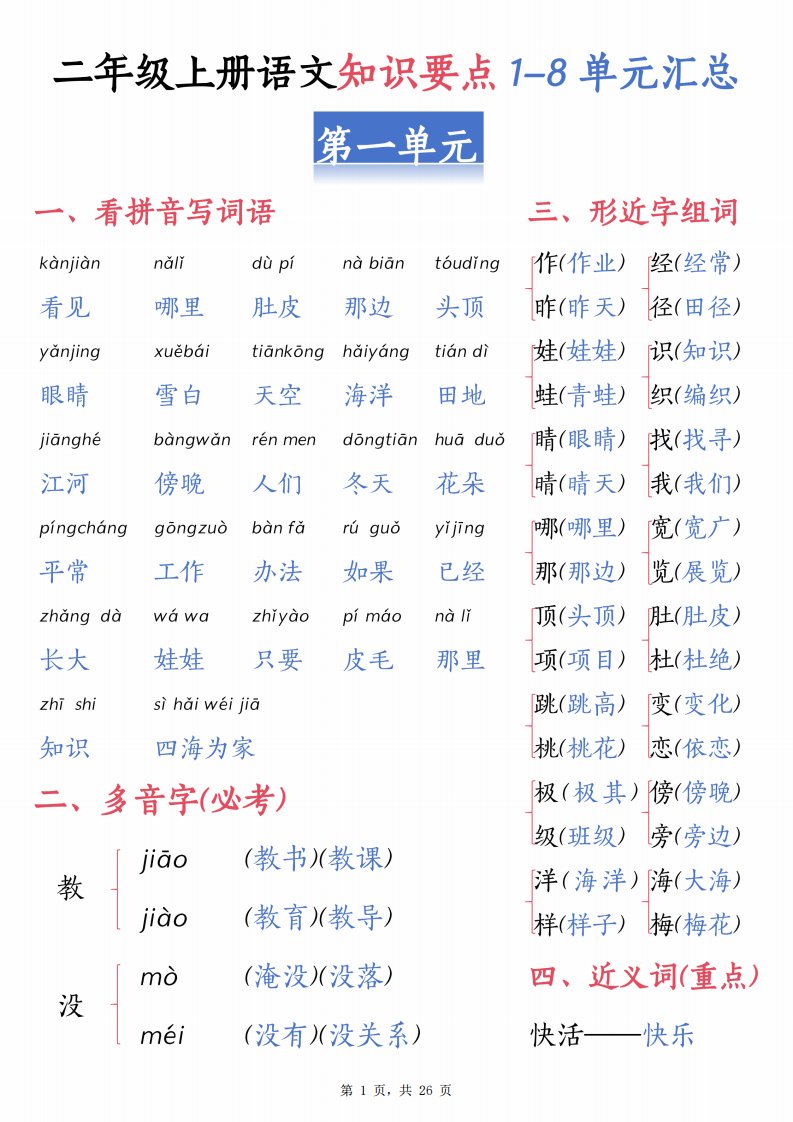 当前位置: 首页小学资源小学二年级正文 【1-8单元汇总知识要点(26页)】二上语文_共26页 小学二年级 2 周前 0 0 15 以上为部分内容预览,如需源文档请登录您的会员账号进行下载! 声明:本站所有文章,如无特殊说明或标注,均为本站原创发布。任何个人或组织,在未征得本站同意时,禁止复制、盗用、采集、发布本站内容到任何网站、书籍等各类媒体平台。如若本站内容侵犯了原著者的合法权益,可联系我们进行处理。 尚学资源永久会员 打赏 收藏 海报 链接