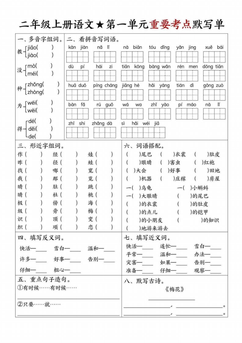 当前位置: 首页小学资源小学二年级正文 【1-8单元重要考点默写单(8页)二上语文】_共8页 小学二年级 2 周前 0 0 5 以上为部分内容预览,如需源文档请登录您的会员账号进行下载! 声明:本站所有文章,如无特殊说明或标注,均为本站原创发布。任何个人或组织,在未征得本站同意时,禁止复制、盗用、采集、发布本站内容到任何网站、书籍等各类媒体平台。如若本站内容侵犯了原著者的合法权益,可联系我们进行处理。 尚学资源永久会员 打赏 收藏 海报 链接