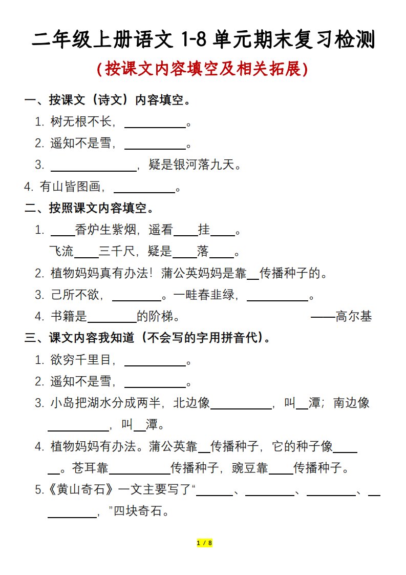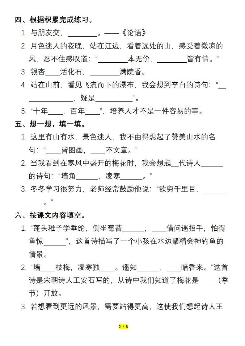 当前位置: 首页小学资源小学二年级正文 二年级上册语文1-8单元期末复习检测-含答案_共16页 小学二年级 2 周前 0 0 10 以上为部分内容预览,如需源文档请登录您的会员账号进行下载! 声明:本站所有文章,如无特殊说明或标注,均为本站原创发布。任何个人或组织,在未征得本站同意时,禁止复制、盗用、采集、发布本站内容到任何网站、书籍等各类媒体平台。如若本站内容侵犯了原著者的合法权益,可联系我们进行处理。 尚学资源永久会员 打赏 收藏 海报 链接