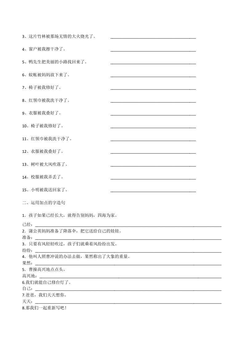 当前位置: 首页小学资源小学二年级正文 二(上)语文期末:句子专项训练_共7页 小学二年级 2 周前 0 0 5 以上为部分内容预览,如需源文档请登录您的会员账号进行下载! 声明:本站所有文章,如无特殊说明或标注,均为本站原创发布。任何个人或组织,在未征得本站同意时,禁止复制、盗用、采集、发布本站内容到任何网站、书籍等各类媒体平台。如若本站内容侵犯了原著者的合法权益,可联系我们进行处理。 尚学资源永久会员 打赏 收藏 海报 链接
