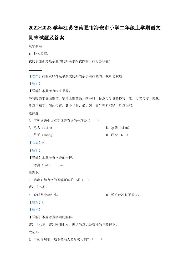 当前位置: 首页小学资源小学二年级正文 2022-2023学年江苏省南通市海安市小学二年级上学期语文期末试题及答案(Word版)_共13页 小学二年级 2 周前 0 0 10 以上为部分内容预览,如需源文档请登录您的会员账号进行下载! 声明:本站所有文章,如无特殊说明或标注,均为本站原创发布。任何个人或组织,在未征得本站同意时,禁止复制、盗用、采集、发布本站内容到任何网站、书籍等各类媒体平台。如若本站内容侵犯了原著者的合法权益,可联系我们进行处理。 尚学资源永久会员 打赏 收藏 海报 链接