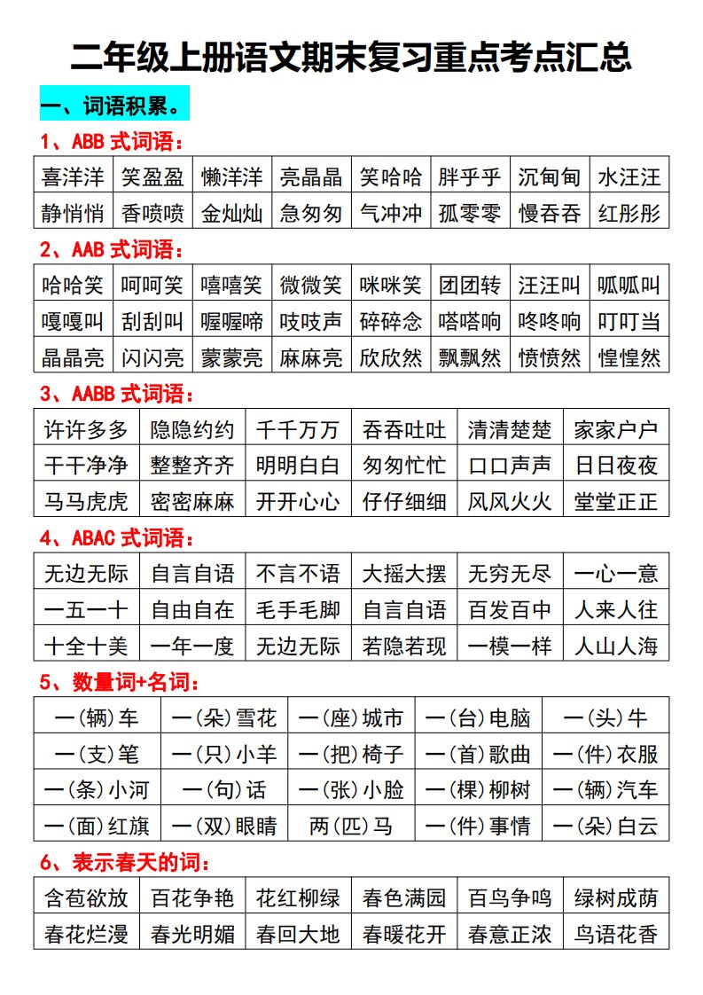 二年级上册语文期末复习重点考点汇总_共10页
