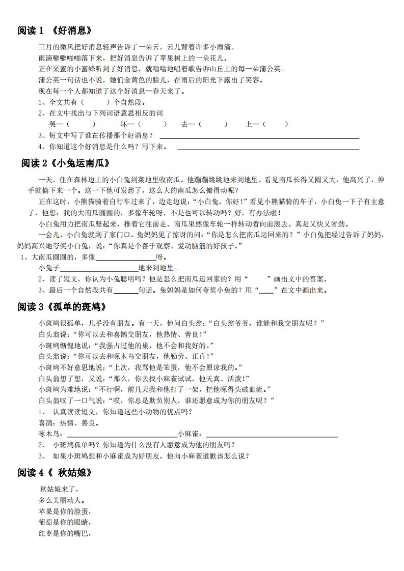 当前位置: 首页小学资源小学二年级正文 二上语文短文阅读练习30篇_共10页 小学二年级 2 周前 0 0 5 以上为部分内容预览,如需源文档请登录您的会员账号进行下载! 声明:本站所有文章,如无特殊说明或标注,均为本站原创发布。任何个人或组织,在未征得本站同意时,禁止复制、盗用、采集、发布本站内容到任何网站、书籍等各类媒体平台。如若本站内容侵犯了原著者的合法权益,可联系我们进行处理。 尚学资源永久会员 打赏 收藏 海报 链接