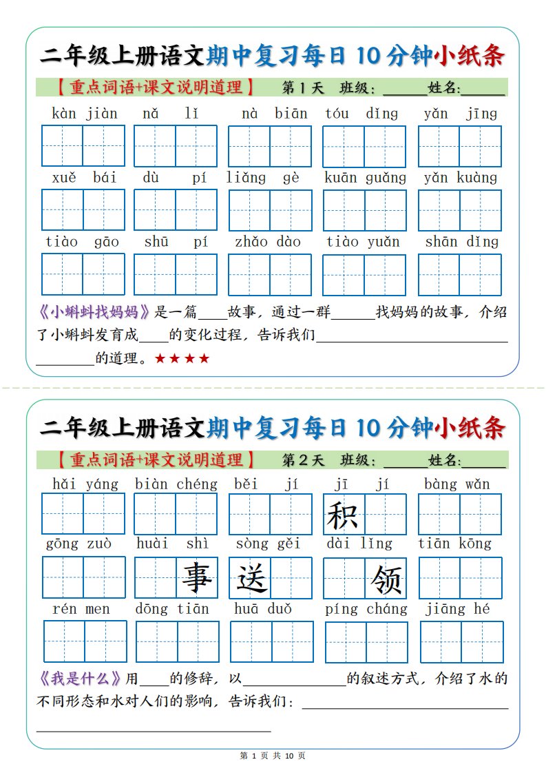当前位置: 首页小学资源小学二年级正文 二年级上册语文期中复习小纸条【重点字词+课文说明道理】_共10页 小学二年级 2 周前 0 0 5 以上为部分内容预览,如需源文档请登录您的会员账号进行下载! 声明:本站所有文章,如无特殊说明或标注,均为本站原创发布。任何个人或组织,在未征得本站同意时,禁止复制、盗用、采集、发布本站内容到任何网站、书籍等各类媒体平台。如若本站内容侵犯了原著者的合法权益,可联系我们进行处理。 尚学资源永久会员 打赏 收藏 海报 链接