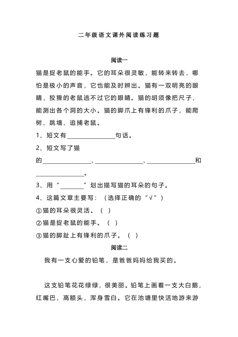 当前位置: 首页小学资源小学二年级正文 二上语文课外阅读题专项训练_共9页 小学二年级 2 周前 0 0 5 以上为部分内容预览,如需源文档请登录您的会员账号进行下载! 声明:本站所有文章,如无特殊说明或标注,均为本站原创发布。任何个人或组织,在未征得本站同意时,禁止复制、盗用、采集、发布本站内容到任何网站、书籍等各类媒体平台。如若本站内容侵犯了原著者的合法权益,可联系我们进行处理。 尚学资源永久会员 打赏 收藏 海报 链接