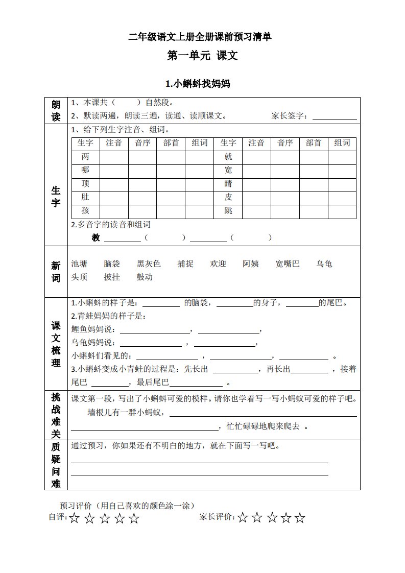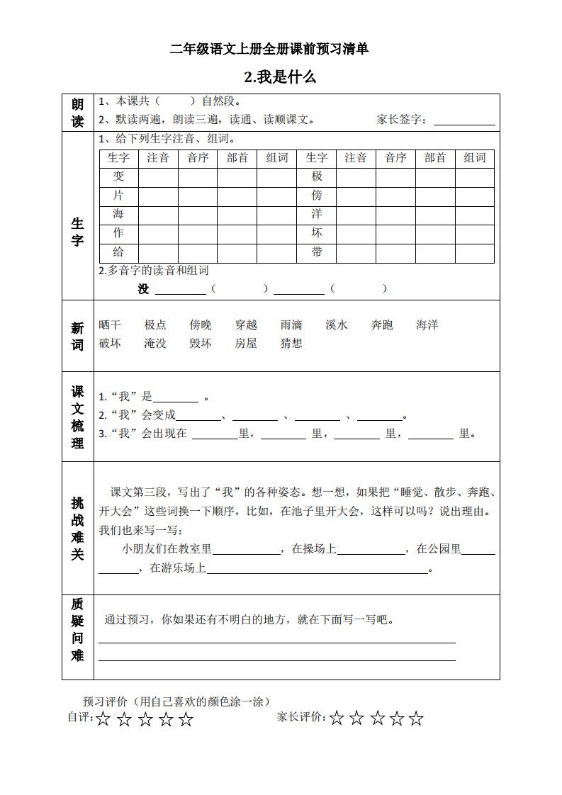 当前位置: 首页小学资源小学二年级正文 二上语文课前预习清单(课)_共3页 小学二年级 2 周前 0 0 5 以上为部分内容预览,如需源文档请登录您的会员账号进行下载! 声明:本站所有文章,如无特殊说明或标注,均为本站原创发布。任何个人或组织,在未征得本站同意时,禁止复制、盗用、采集、发布本站内容到任何网站、书籍等各类媒体平台。如若本站内容侵犯了原著者的合法权益,可联系我们进行处理。 尚学资源永久会员 打赏 收藏 海报 链接