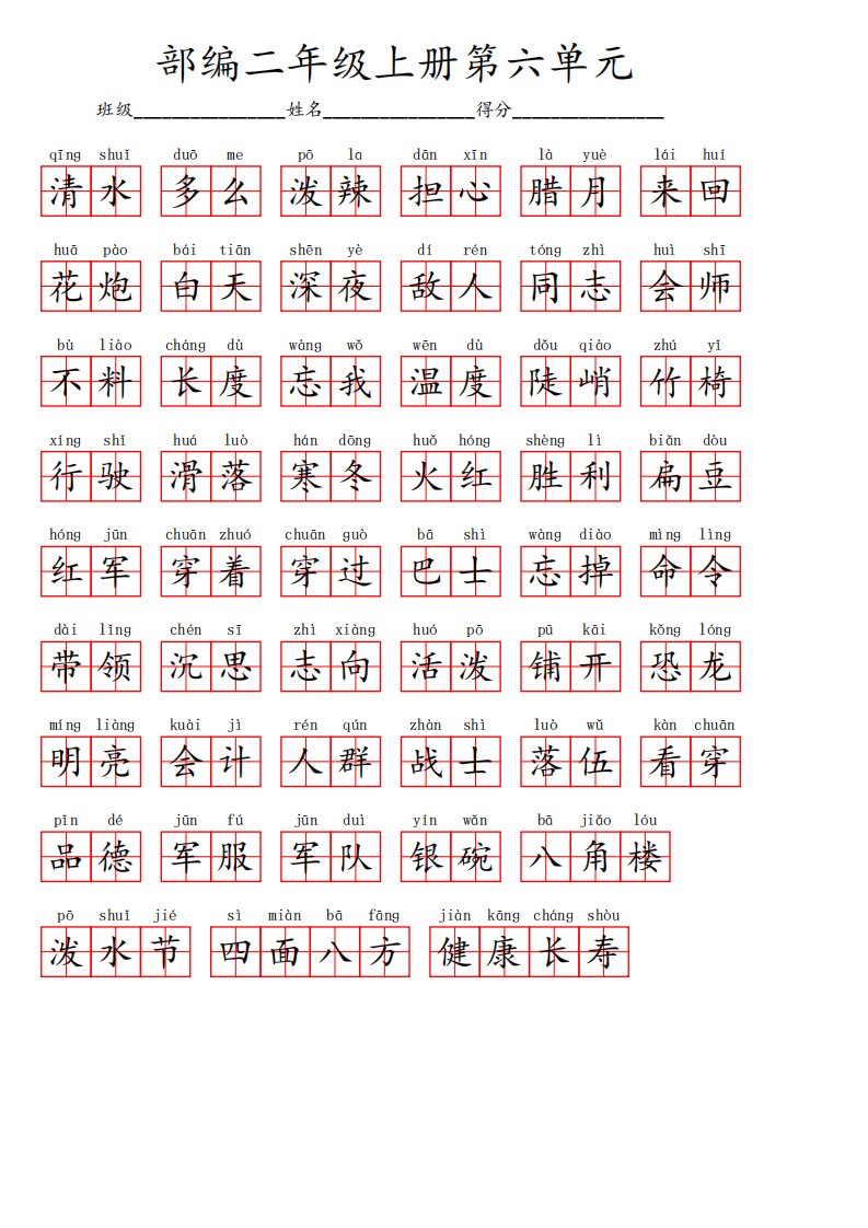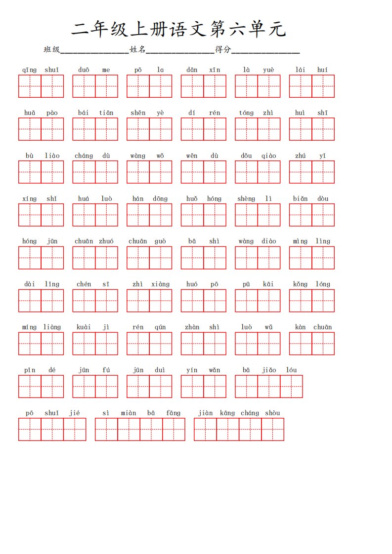 二上语文第六单元生字扩词词语表(看拼音写词语)_共2页