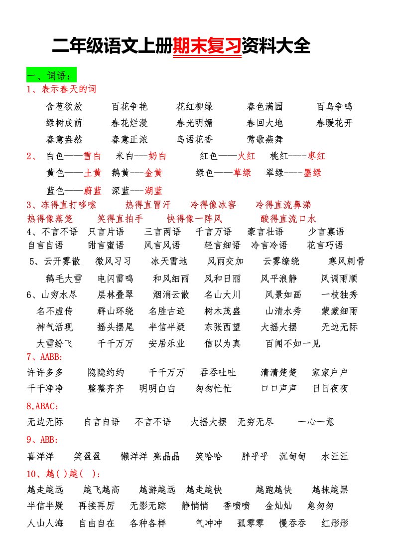 当前位置: 首页小学资源小学二年级正文 二年级语文上册期末复习资料大全_共10页 小学二年级 2 周前 0 0 5 以上为部分内容预览,如需源文档请登录您的会员账号进行下载! 声明:本站所有文章,如无特殊说明或标注,均为本站原创发布。任何个人或组织,在未征得本站同意时,禁止复制、盗用、采集、发布本站内容到任何网站、书籍等各类媒体平台。如若本站内容侵犯了原著者的合法权益,可联系我们进行处理。 尚学资源永久会员 打赏 收藏 海报 链接