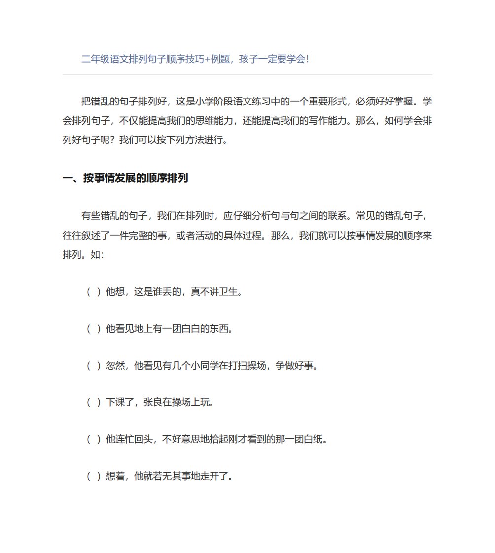 当前位置: 首页小学资源小学二年级正文 二年级语文上册排列句子顺序技巧例题孩子一定要学会_共7页 小学二年级 2 周前 0 0 5 以上为部分内容预览,如需源文档请登录您的会员账号进行下载! 声明:本站所有文章,如无特殊说明或标注,均为本站原创发布。任何个人或组织,在未征得本站同意时,禁止复制、盗用、采集、发布本站内容到任何网站、书籍等各类媒体平台。如若本站内容侵犯了原著者的合法权益,可联系我们进行处理。 尚学资源永久会员 打赏 收藏 海报 链接