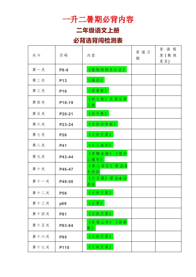 当前位置: 首页小学资源小学二年级正文 二年级语文上册必背课文_共6页 小学二年级 2 周前 0 0 5 以上为部分内容预览,如需源文档请登录您的会员账号进行下载! 声明:本站所有文章,如无特殊说明或标注,均为本站原创发布。任何个人或组织,在未征得本站同意时,禁止复制、盗用、采集、发布本站内容到任何网站、书籍等各类媒体平台。如若本站内容侵犯了原著者的合法权益,可联系我们进行处理。 尚学资源永久会员 打赏 收藏 海报 链接