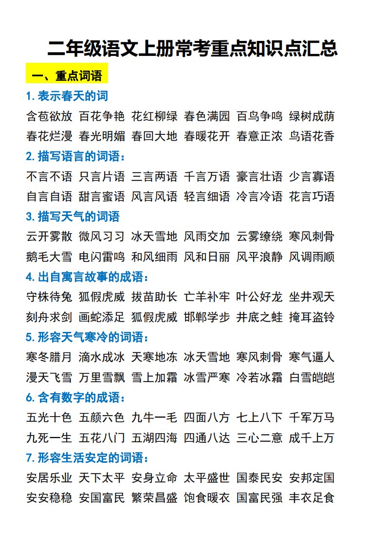 当前位置: 首页小学资源小学二年级正文 二年级语文上册常考重点知识点汇总必背_共7页 小学二年级 2 周前 0 0 5 以上为部分内容预览,如需源文档请登录您的会员账号进行下载! 声明:本站所有文章,如无特殊说明或标注,均为本站原创发布。任何个人或组织,在未征得本站同意时,禁止复制、盗用、采集、发布本站内容到任何网站、书籍等各类媒体平台。如若本站内容侵犯了原著者的合法权益,可联系我们进行处理。 尚学资源永久会员 打赏 收藏 海报 链接