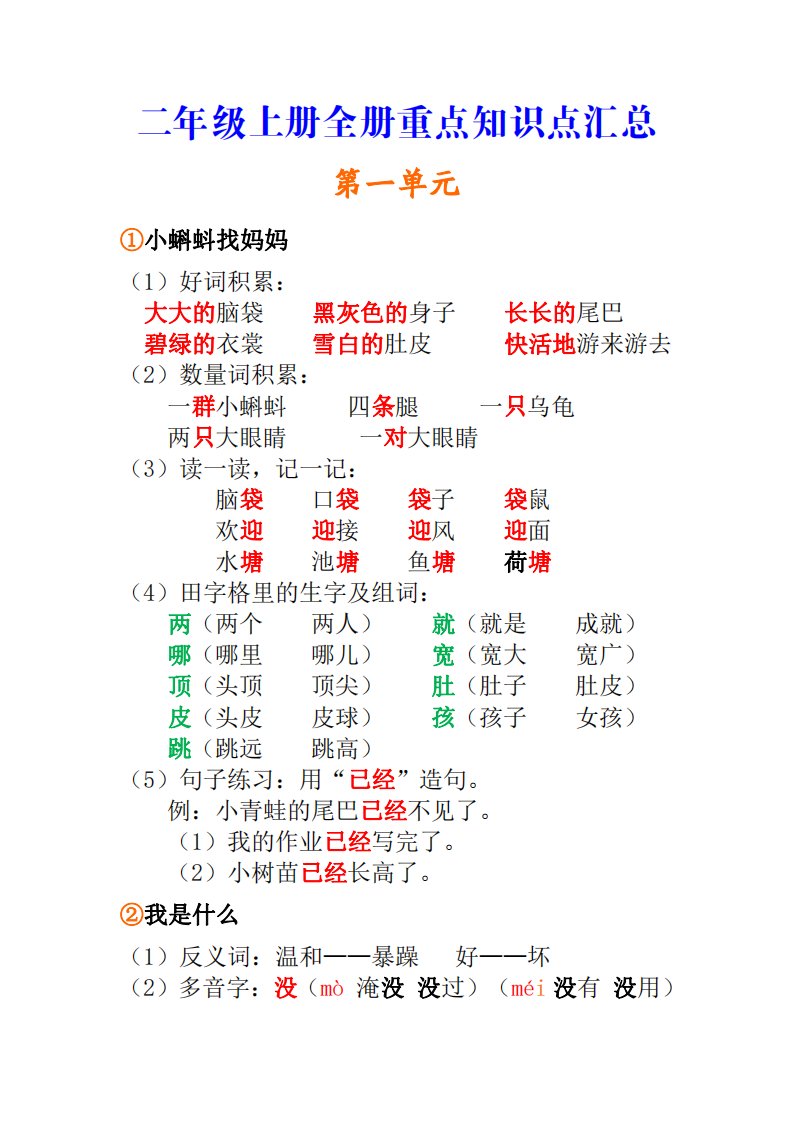 当前位置: 首页小学资源小学二年级正文 二年级上册语文全册重点知识点汇总_共19页 小学二年级 2 周前 0 0 10 以上为部分内容预览,如需源文档请登录您的会员账号进行下载! 声明:本站所有文章,如无特殊说明或标注,均为本站原创发布。任何个人或组织,在未征得本站同意时,禁止复制、盗用、采集、发布本站内容到任何网站、书籍等各类媒体平台。如若本站内容侵犯了原著者的合法权益,可联系我们进行处理。 尚学资源永久会员 打赏 收藏 海报 链接