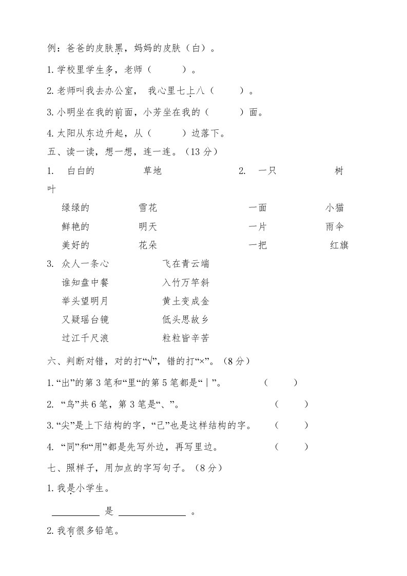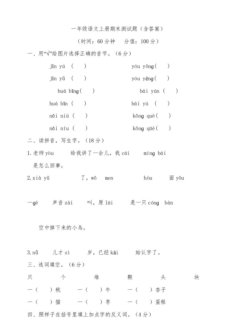 当前位置: 首页小学资源小学一年级正文 一年级语文上册(期末试题)-部编(19)(部编版)_共8页 小学一年级 2 周前 0 0 5 以上为部分内容预览,如需源文档请登录您的会员账号进行下载! 声明:本站所有文章,如无特殊说明或标注,均为本站原创发布。任何个人或组织,在未征得本站同意时,禁止复制、盗用、采集、发布本站内容到任何网站、书籍等各类媒体平台。如若本站内容侵犯了原著者的合法权益,可联系我们进行处理。 尚学资源永久会员 打赏 收藏 海报 链接