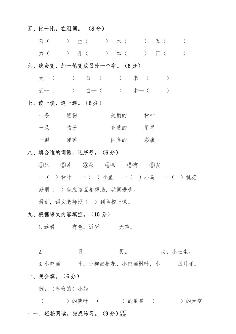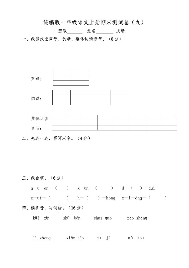 一年级语文上册(期末试题)-部编(16)(部编版)_共4页